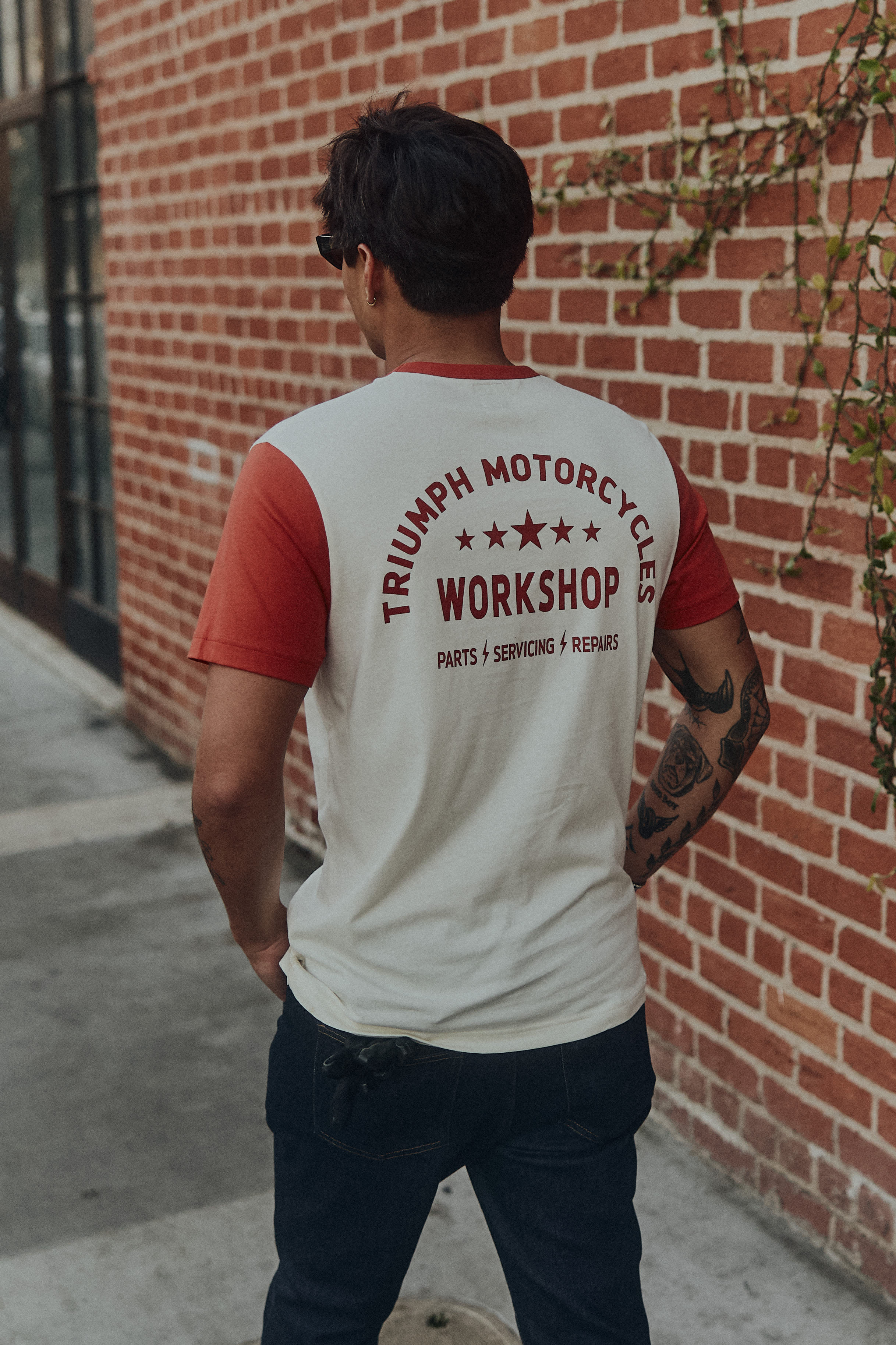 Classic design with monochrome style. Featuring moto-inspired Triumph Workshop arched graphic, signature woven badge and constructed in 100% cotton 160gsm.Disclaimer: This product does not include body armour. Casual and Heritage wear does not provide the same protection as Riderwear.